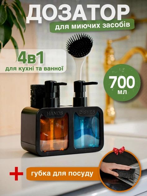 Дозатор для рідкого мила та миючого засобу 4в1 700 мл настільний натискний механічний диспенсер органайзер для кухні та у ва