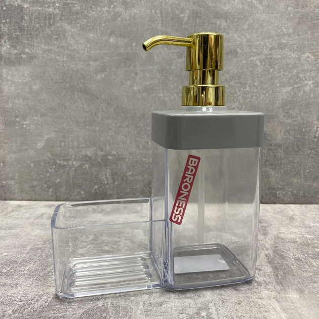 Дозатор для рідкого мила з контейнером для губки прозорий із світло-сірим Baroness "Silver Combo" золотий 20014
