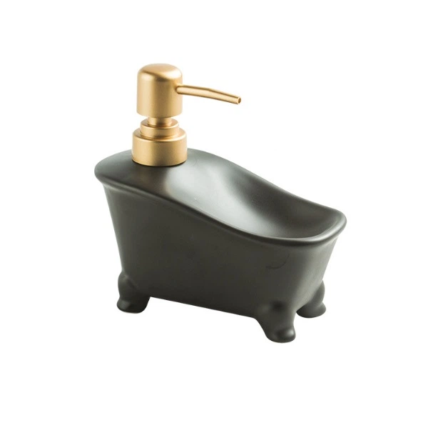Дозатор для мила з підставкою для мочалки Однотон 11485 350 мл чорний