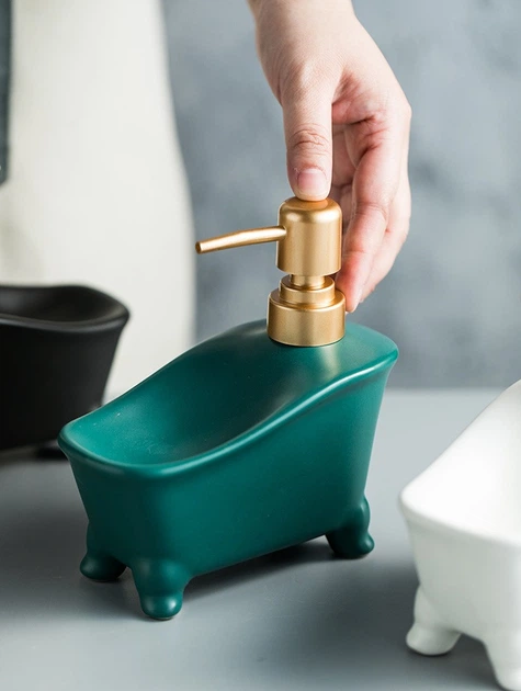 Дозатор для мила з підставкою для мочалки Однотон 11487 350 мл зелений