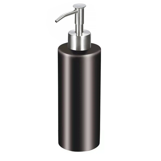 Дозатор для рідкого мила ROZZY JENORI WROCLAW RJAC024-02BL настольный на 375мл округлий із нержавіючої сталі чорний/хром