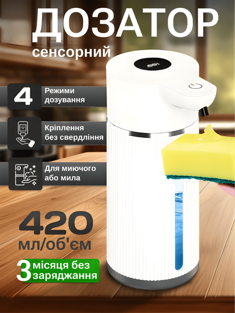 Сенсорний дозатор для рідкого мила миючого засобу MA GTM Gel Диспенсер на кухню у настінний ванну 420 мл акумуляторний