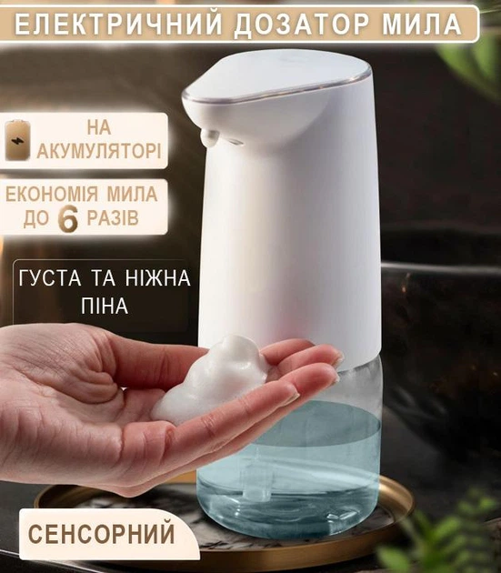 Сенсорний Дозатор для мила FoamSens Безконтактний автоматичний Диспенсер рідкого мила що утворює густу піну Білий на акумуля