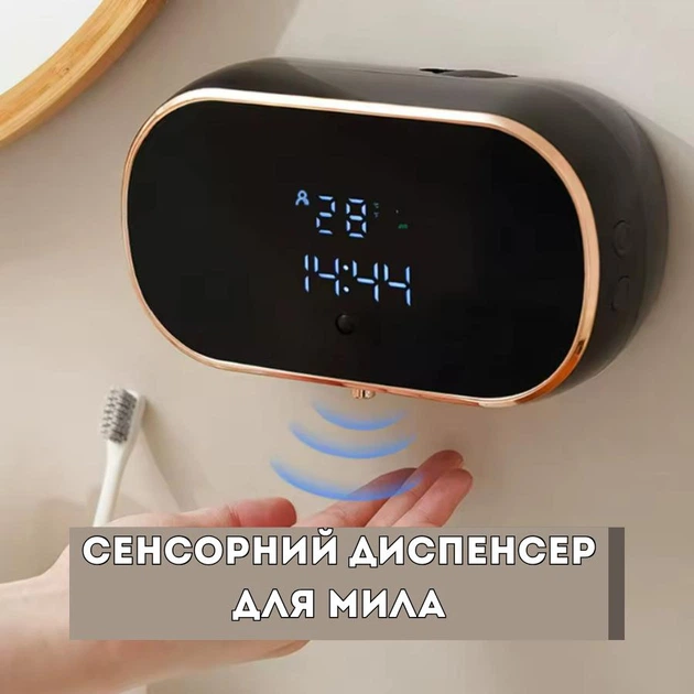 Сенсорний диспенсер для мила настінний з годинником (Black)