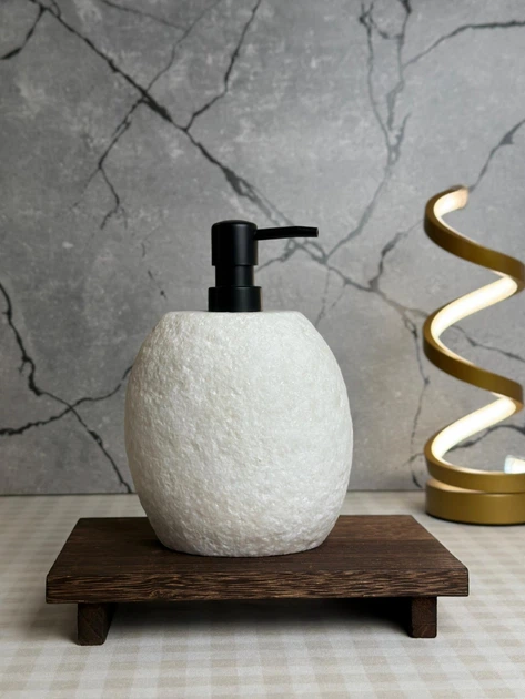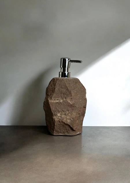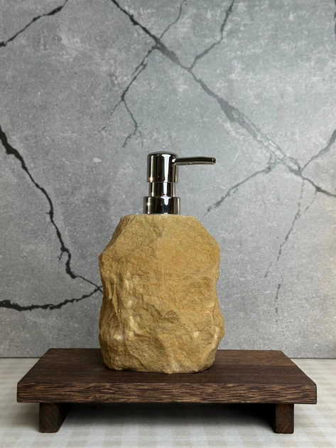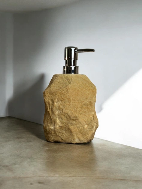 Великий дозатор для мила з натурального бежевого піщанику – магія ніжності у вашій ванній!