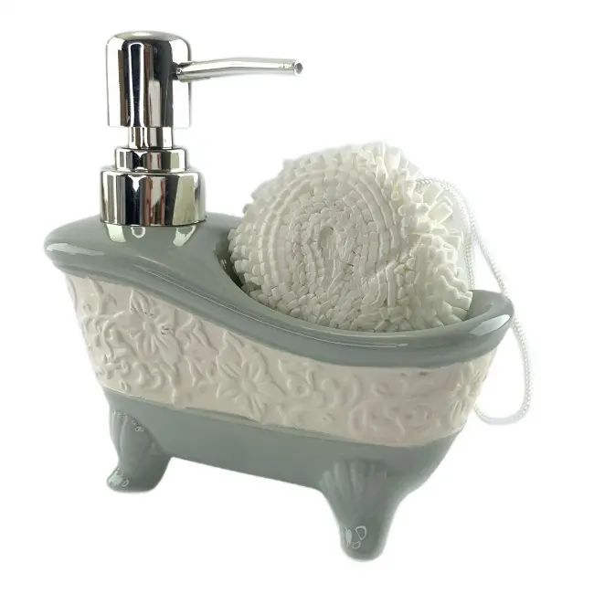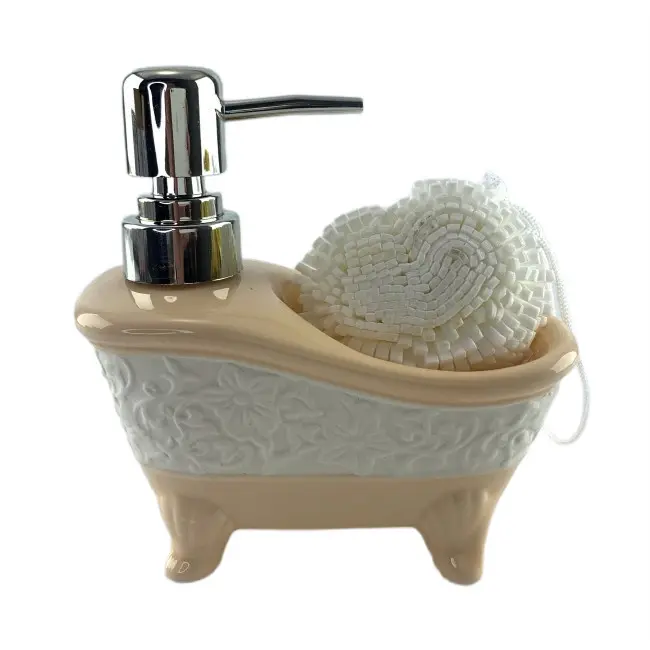 Диспенсер для мила Ванна з мочалкою 14х14х7 см кремовий