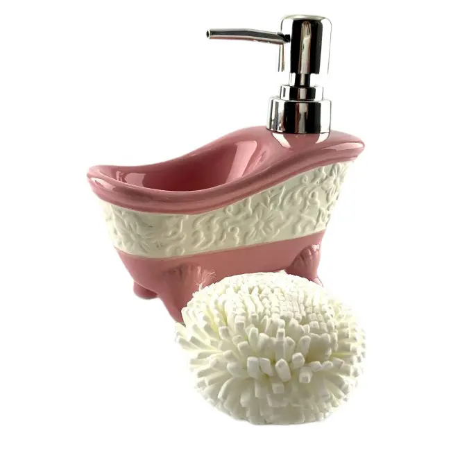 Диспенсер для мила Ванна з мочалкою 14х14х7 см рожевий