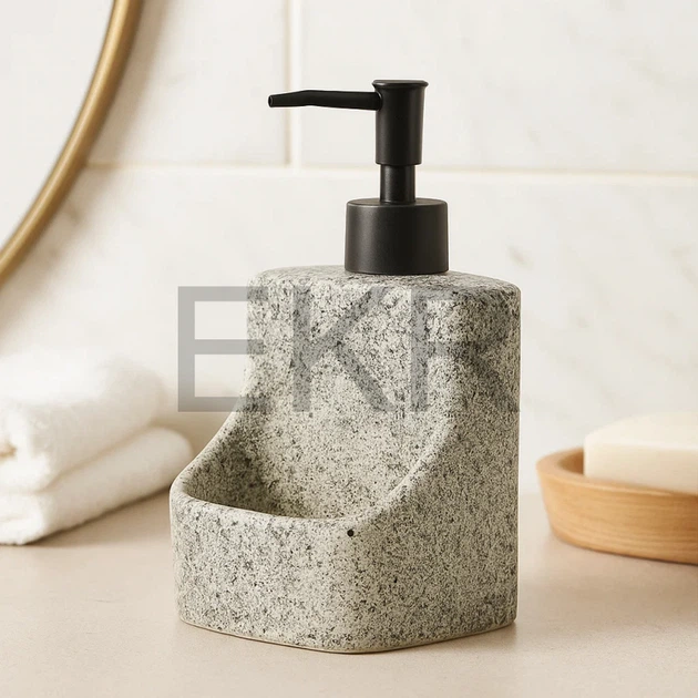 Дозатор "Stone Grey" для рідкого мила та мийного засобу з тримачем для губки, 400 мл, дизайн сірий камінь (851-333)