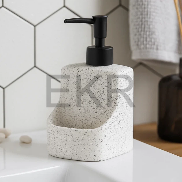 Дозатор "White Stone" для рідкого мила та мийного засобу з тримачем для губки, 400 мл, дизайн білий камінь (851-334)