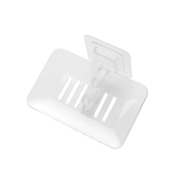 Тримач-мильниця для мила настінний зі зливом у ванну, душову, самоклеючий монтаж 1 шт. Прозорий білий