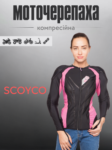 Моточерепаха компресійна жіноча SCOYCO Hermes Body armor AM03W (поліестер, еластан, розмір 2XL, Чорно-рожевий)