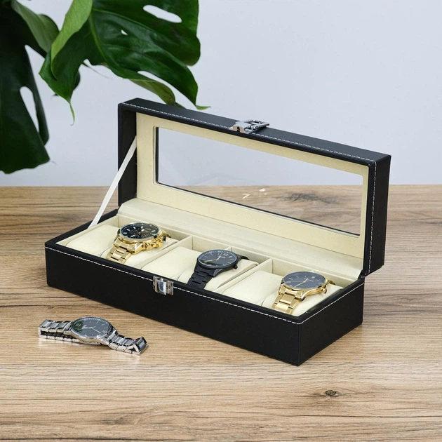 Шкатулка органайзер для зберігання годинників на 6 слотів екошкіра Prezent К-27 чорна
