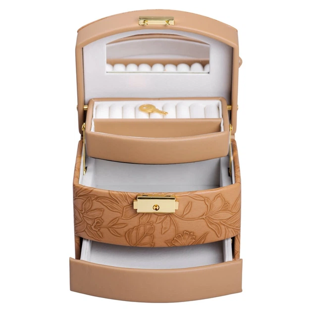 Скринька для прикрас з еко шкіри 3 яруси із замком органайзер для ювелірних виробів HP-5-23BR
