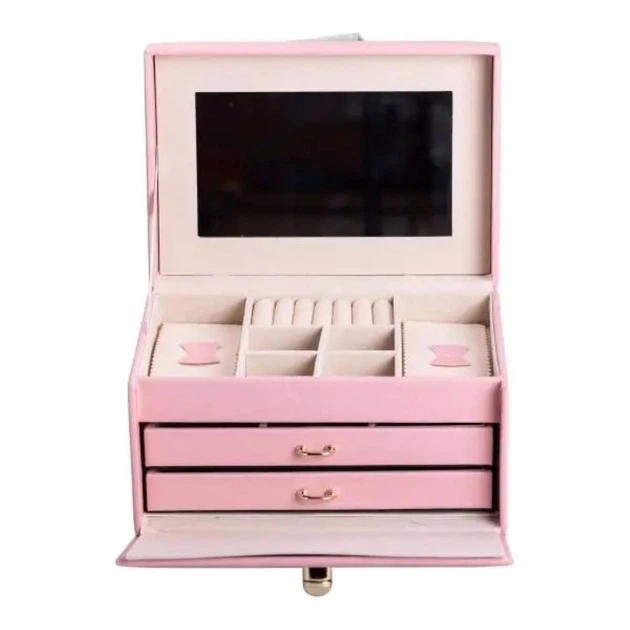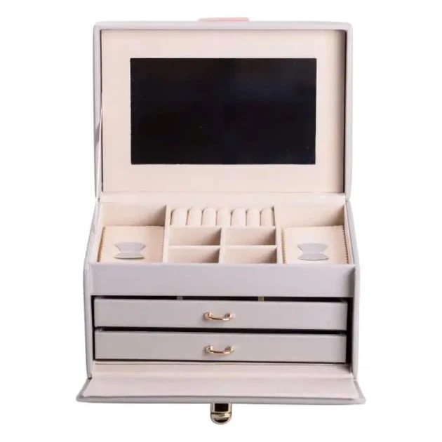 Скринька для прикрас з еко шкіри 3 яруси з дзеркалом органайзер для ювелірних виробів HP-5-17G