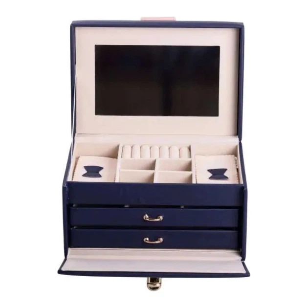 Скринька для прикрас з еко шкіри 3 яруси з дзеркалом органайзер для ювелірних виробів HP-5-17BL