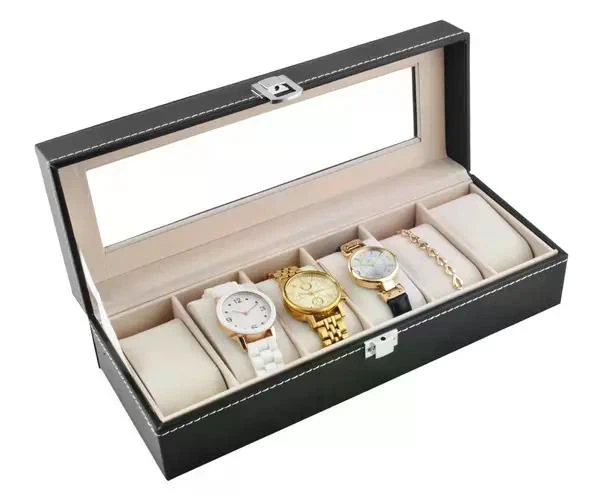 Багатофункціональна шкатулка-органайзер для годинників, браслетів ювелірних прикрас Soulima СР1520, 6 відділень, чорний