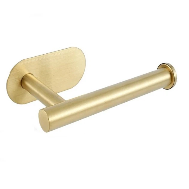 Тримач для туалетного паперу металевий, настінний з самоклеючим монтажем, для одного рулону, Золотистий