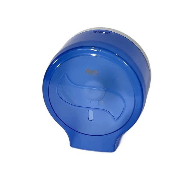 Диспенсер для туалетного паперу джамбо, з нижнім витягуванням, пластиковий, прозорий блакитний