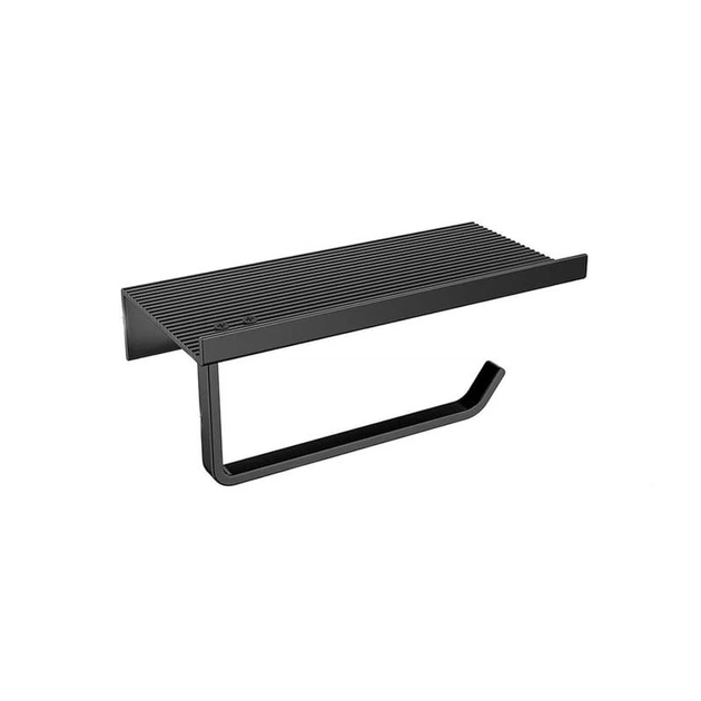 Настінний металевий тримач для туалетного паперу з полицею, самоклеючий монтаж 1 шт. Чорний