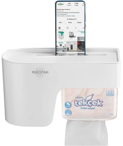 Диспенсер для листового та рулонного туалетного паперу універсальний Rulopak 803528.W з поличкою білий
