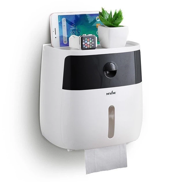 Тримач для туалетного паперу із кришкою із поличкою MVM округлий пластиковий сірий BP-44 white/gray