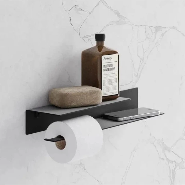 Тримач туалетного паперу з полицею WENKO Classic Plus Black, сталь, чорний