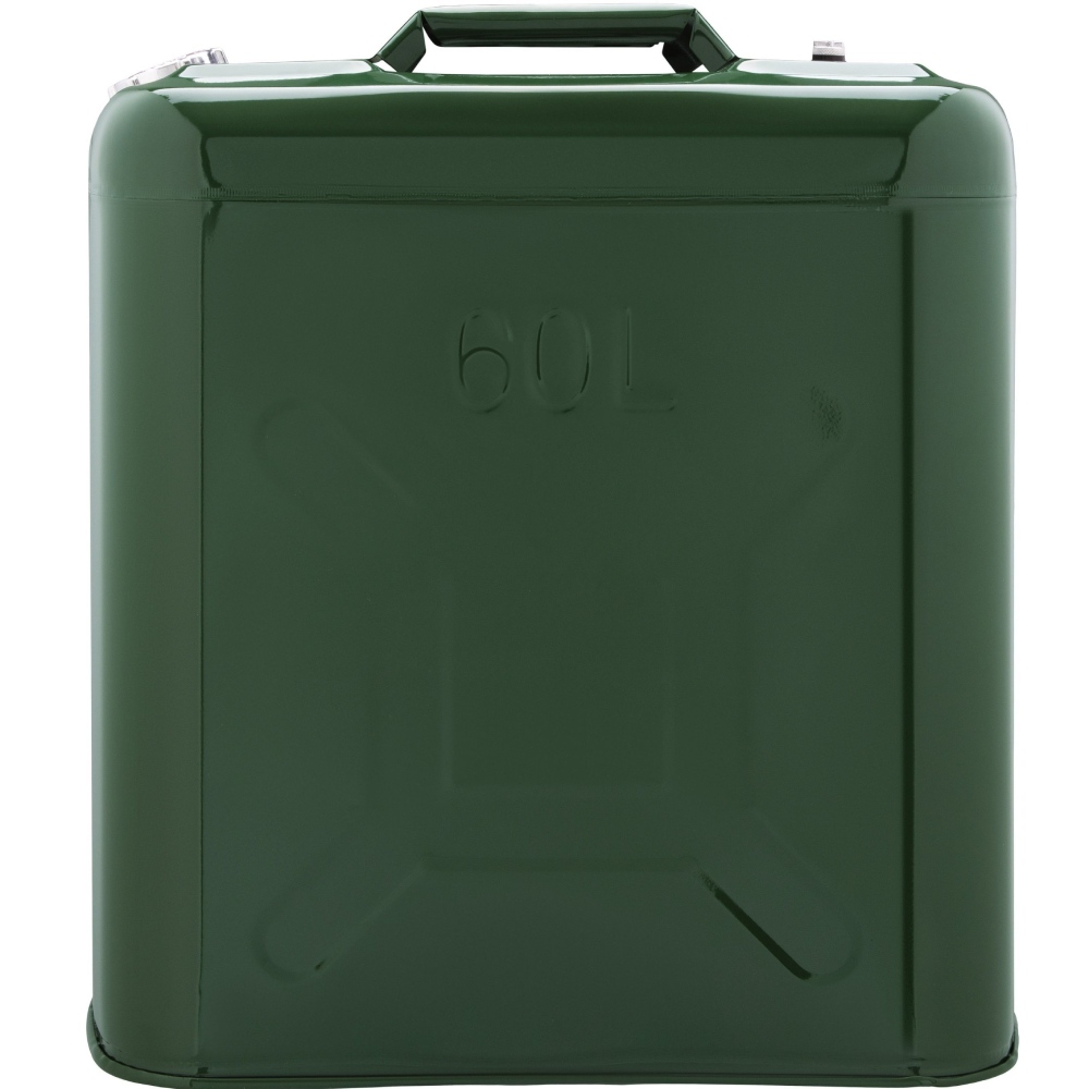 Об`єм - 10 л, Матеріал - метал, Рідина - бензин, дизель, антифриз, Тип кришки - кришка з важелем, Особливості - вертикальні, Товщина стінок - 0.8 мм, Товщина дна - 0.8 мм, темно-зелений, Вага - 2.1 кг