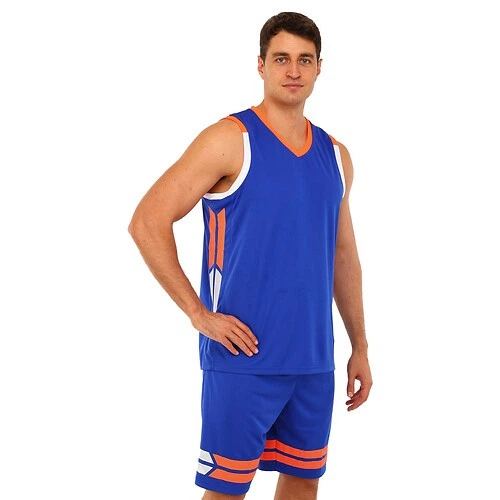 Баскетбольна форма майка та шорти розмір 5XL 180-185 см LIDONG синій з оранжевим LD-8019