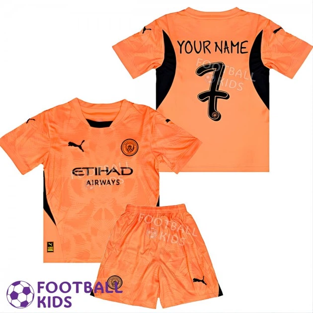 Футбольна форма дитяча з Власним прізвищем Манчестер Сіті 2024-2025 Goalkeeper Orange XXL-28 (155-165 см) (set3915-128280)