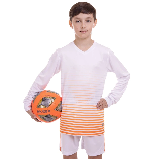 Форма футбольна дитяча комплект лонгслів та шорти (поліестер, розмір 30, Білий-оранжевий) (CO-1908B-1Білий-помаранчевий30)