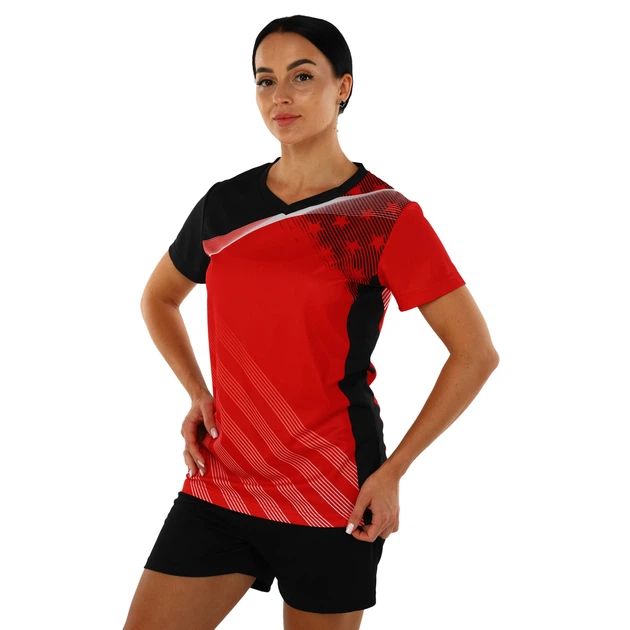 Форма волейбольна жіноча футболка та шорти (поліестер, розмір L, Червоно-чорний) (PQ233Червоно-чорнийL)