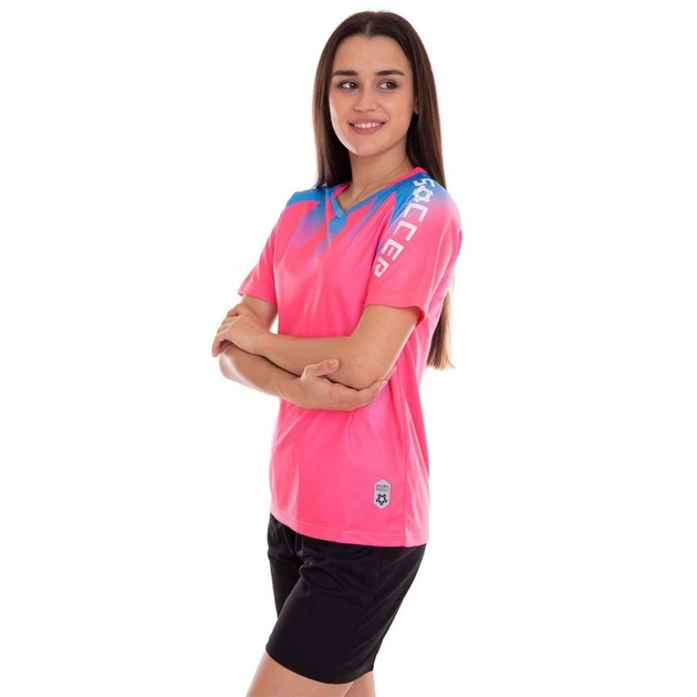 Форма футбольна комплект футболка та шорти SP-Sport D8831 L рожевий-чорний
