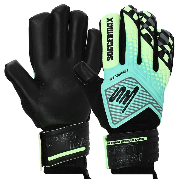 Професійні рукавиці воротарські із захистом пальців SOCCERMAX GK-4317 розмір 10 блакитний-салатовий