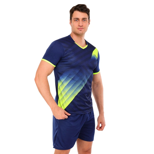 Форма футбольна чоловіча шорти + футболка SP-Sport 112 розмір XL (46-48) зріст 170-175см Deep Blue-Neon Green