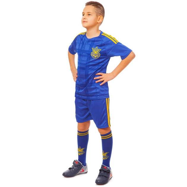 Форма футбольна дитяча комплект футболка шорти та гетри з символікою збірної УКРАЇНА SP-Sport 3900-16B-ETM1721 XS синій
