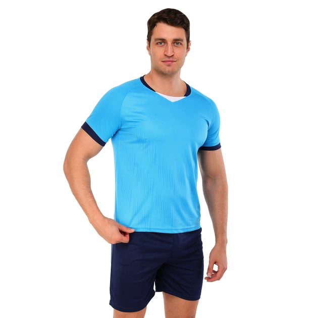 Форма футбольна комплект футболка і шорти Lingo D8853 (поліестер, розмір 2XL, блакитно-чорний)