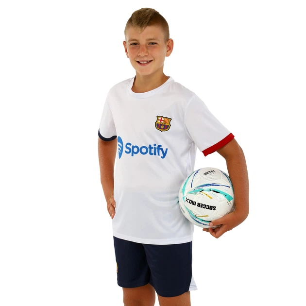 Форма футбольна дитяча із символікою футбольного клубу BARCELONA гостєва 2024 (PL, р-р XS-22, зріст 110-116см, білий-синій)
