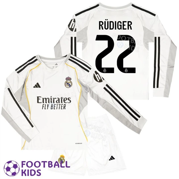 Футбольна форма для дітей Real Madrid RDIGER 22 Реал Мадрид 2025-2026 Home Long Sleeve 155-165 см (set4717-135871-3)