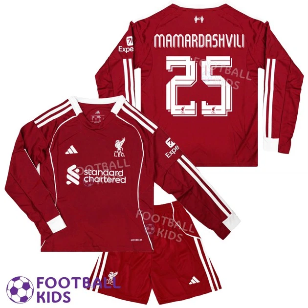 Дитяча футбольна форма Liverpool MAMARDASHVILI 25 Ліверпуль 2025-2026 Home Long Sleeve 135-145 см (set47231-136121-3)