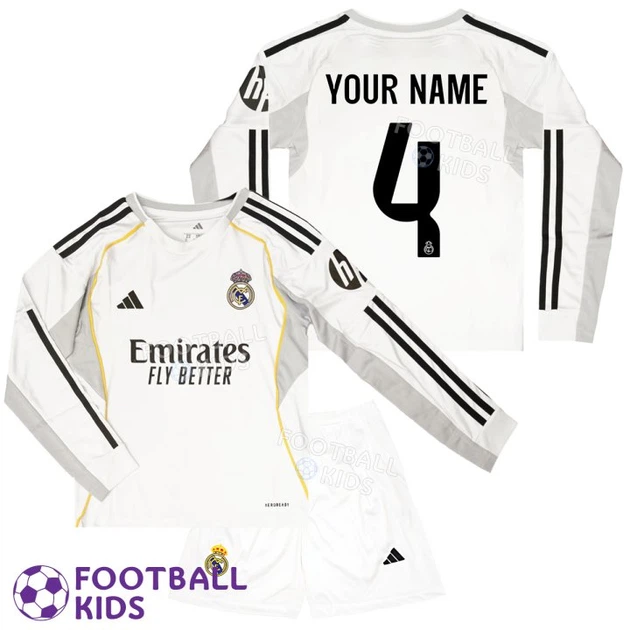 Футбольна форма для дітей з Власним прізвищем Реал Мадрид 2025-2026 Home Long Sleeve 125-135 см (set4717-135855-3)
