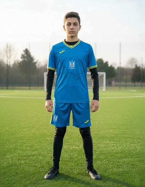 Дитяча футбольна форма збірної України синя з картою України + термо-компресійний комплект б/н 24(130-140см)