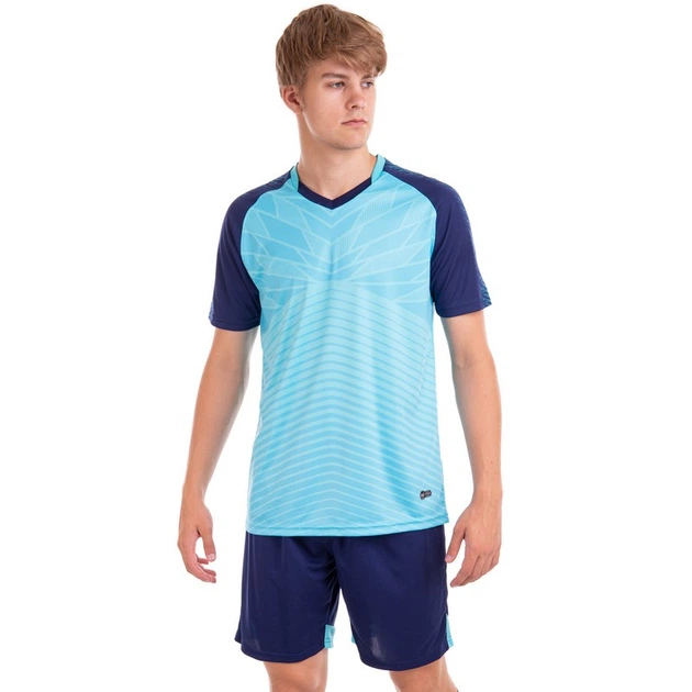 Форма футбольна комплект футболка та шорти Lingo LD-M8601 (поліестер, розмір L, колір блакитний-темно-синій)