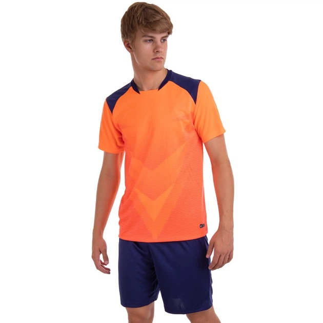 Форма футбольна комплект футболка та шорти Lingo LD-M8627 (поліестер, розмір L, колір оранжевий-темно-синій)