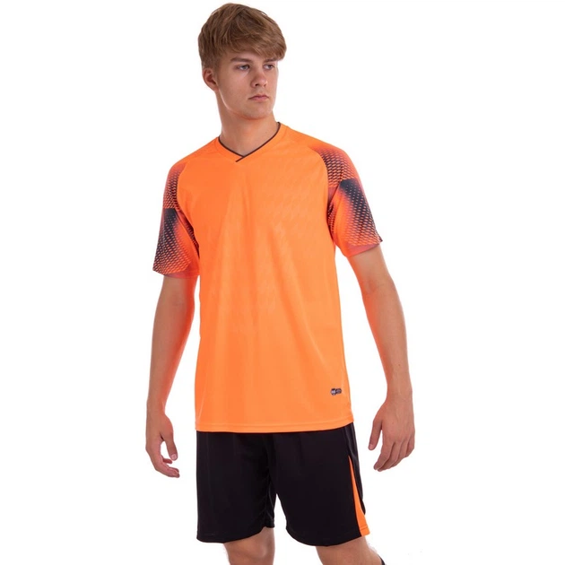 Форма футбольна комплект футболка та шорти Lingo LD-M8608 (поліестер, розмір 4XL, колір оранжевий-чорний)