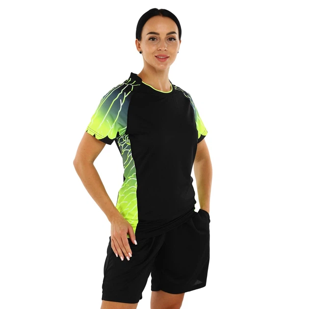 Форма волейбольна жіноча футболка та шорти LIDONG 7320-8808 розмір M чорний-салатовий