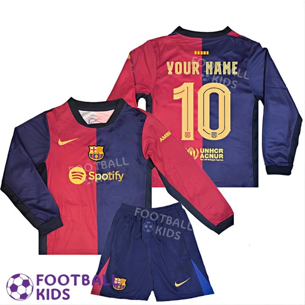 Футбольна форма для дітей з Власним прізвищем Барселона 2025 Home з довгим рукавом 125-135 см (set3651-127279-3)