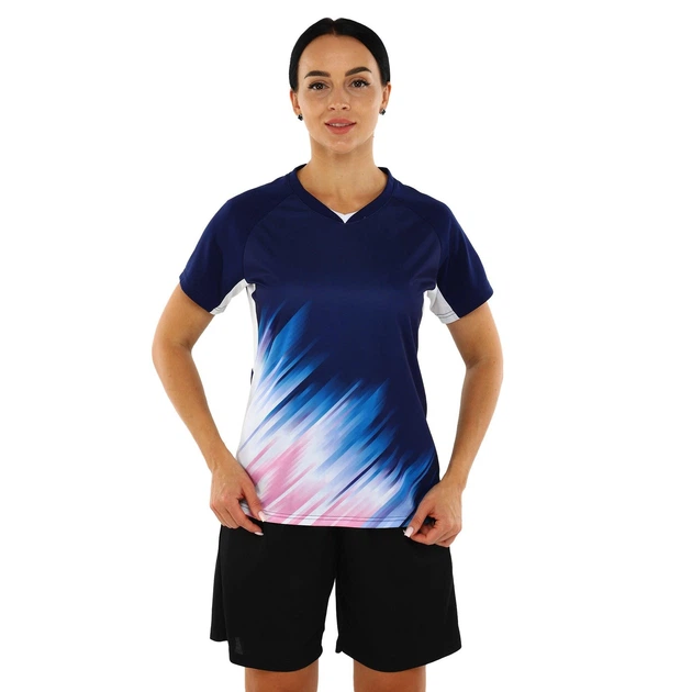 Форма волейбольна жіноча футболка та шорти LIDONG 7372-8808 розмір S темно-синій-блакитний