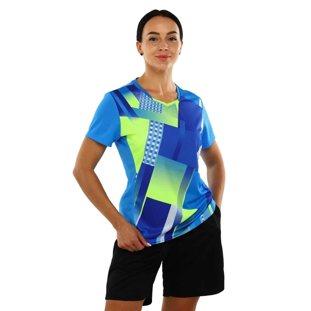 Форма волейбольна жіноча футболка та шорти LIDONG 7370-8808 розмір S блакитний-салатовий