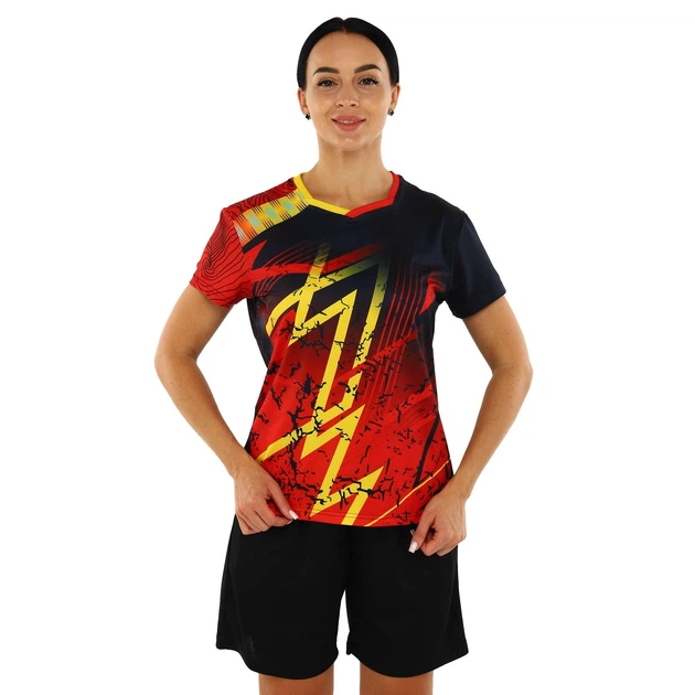 Форма волейбольна жіноча футболка та шорти LIDONG 7330-8808 розмір L червоний-жовтий-чорний