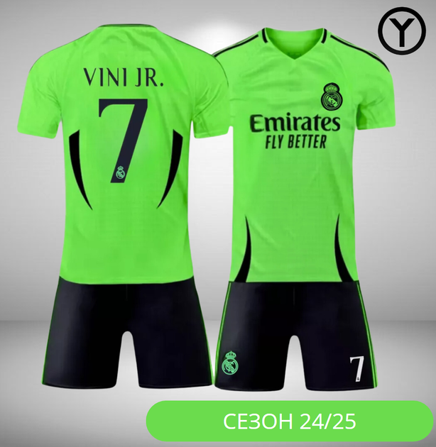 Форма футбольна дитяча Vini jr. №7 Реал Мадрид (Real Madrid) 2025, р.28 ріст-155-165 (салатова)